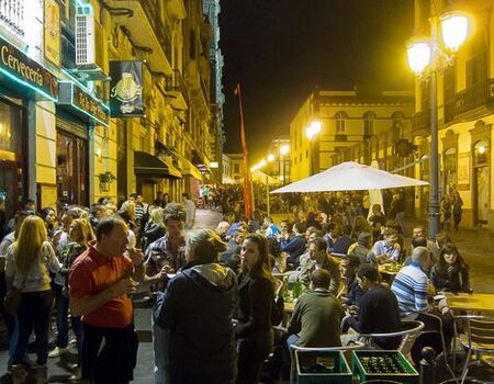 Tomamos algo por el barrio de Vegueta en una de sus concurridas terrazas y nos conocemos.